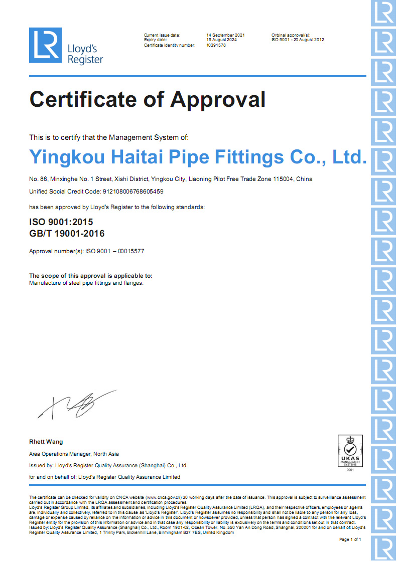 營口海泰金屬管業(yè)有限公司成立于2001年,是專業(yè)生產(chǎn)管道配件的制造經(jīng)營企業(yè)。公司占地面積兩萬五千平方米,坐落于中國遼寧省港口城市營口。營口一市兩港(營口港、鲅魚圈港),東臨大連港四季通航,陸路運輸四通八達(dá)交通便利。